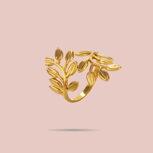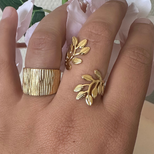 Bague Branche Dorée – Acier Inoxydable Ajustable