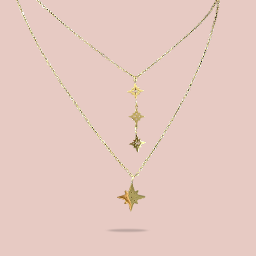Éclairez vos looks avec le Collier Double Étoiles, un bijou raffiné qui superpose deux chaînes délicates ornées de pendentifs en forme d’étoiles. Chic et tendance, il se porte aussi bien au quotidien qu’en soirée pour un éclat subtil et élégant.