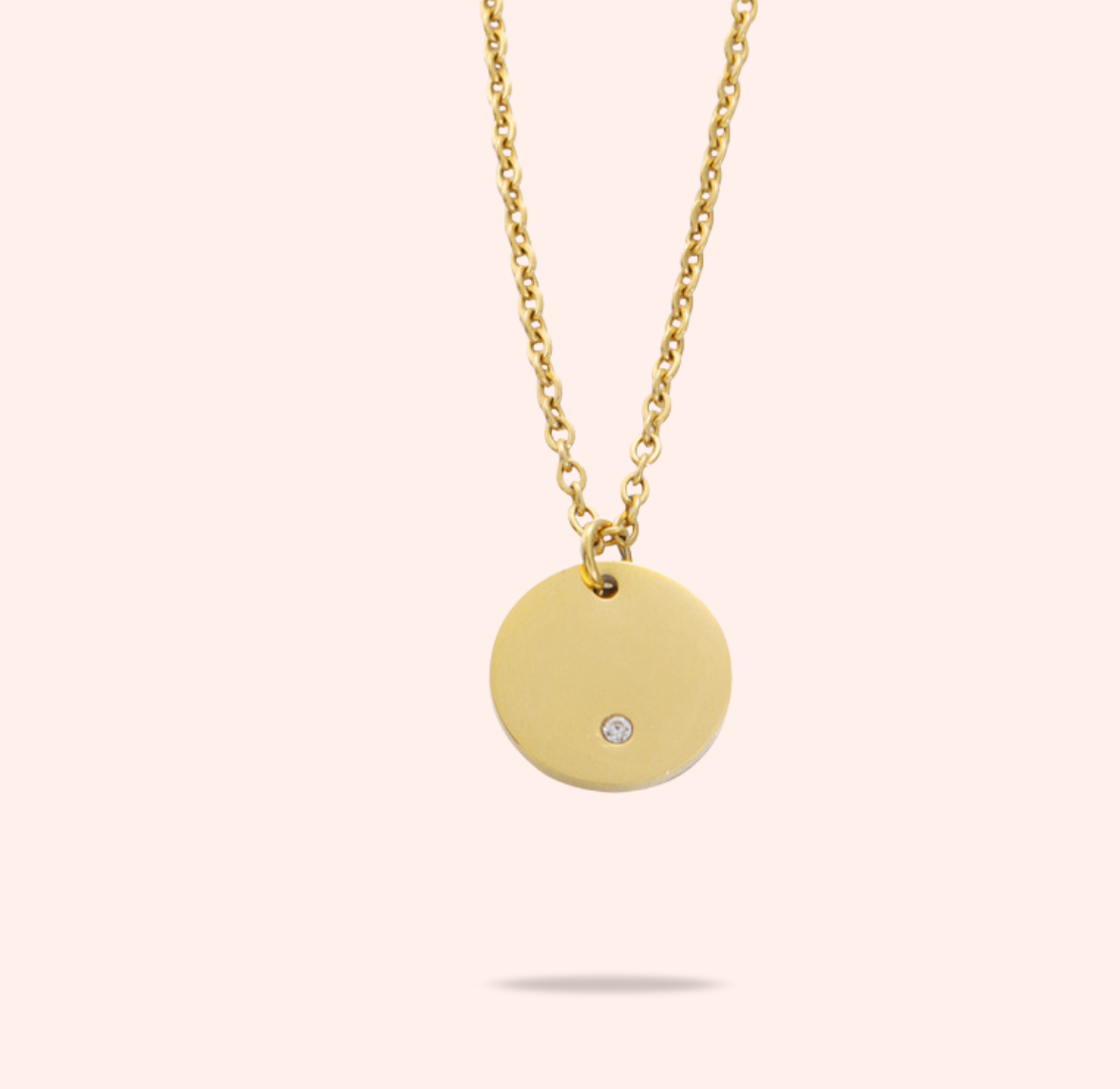 Élégant et raffiné, le collier Médaille Ronde en acier inoxydable doré est orné d’une petite pierre scintillante pour un éclat discret. Son pendentif circulaire peut être personnalisé par gravure (prénom, initiales, date ou mot symbolique), faisant de ce bijou une pièce unique.